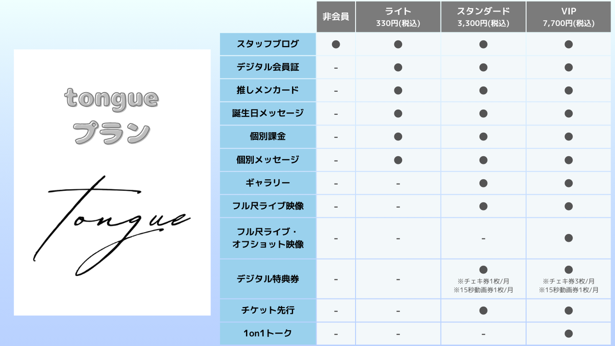 文翠麗、ギミラブ!、tongueそれぞれの個別プランになります。