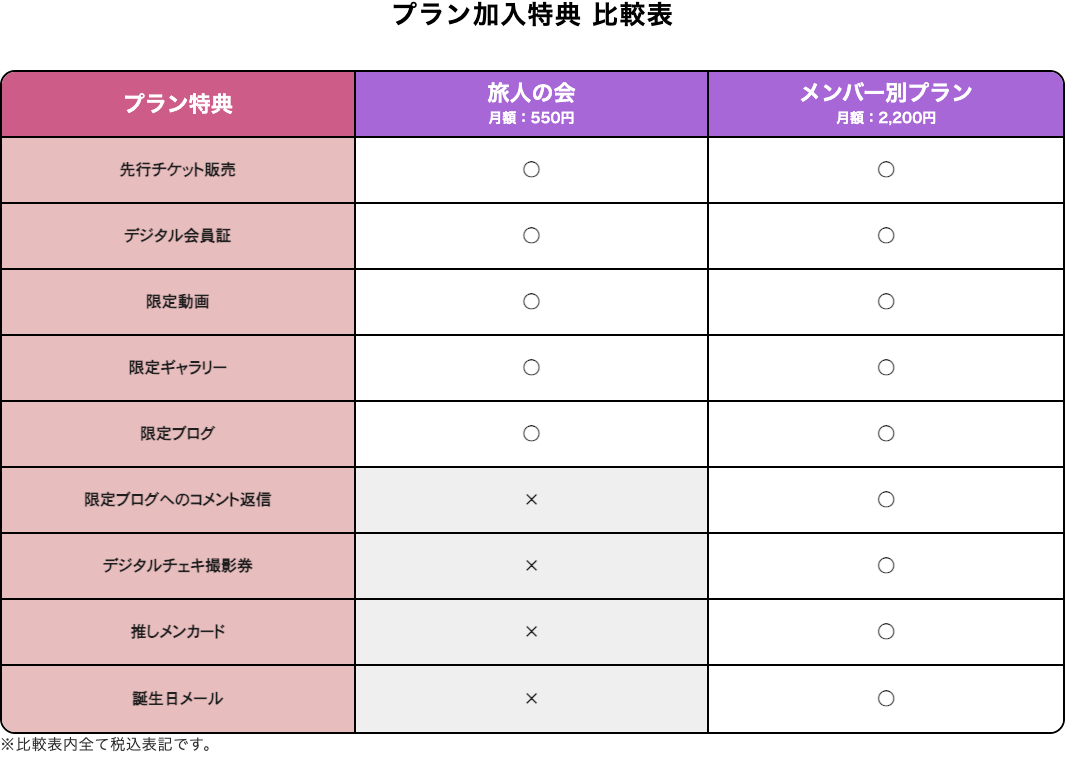 ●旅人の会プラン:月額550円